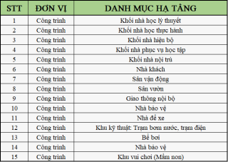 Danh mục hạ tầng thi công: