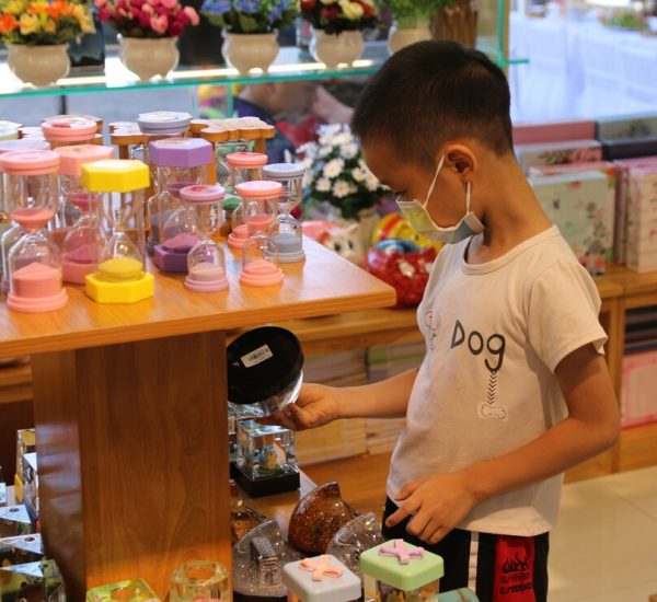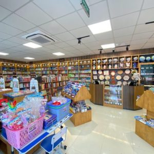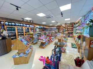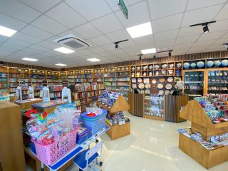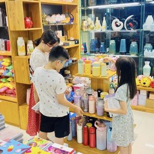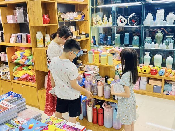 The supermarket is divided into many areas such as: Stationery display area, school supplies, children's toys, souvenirs,