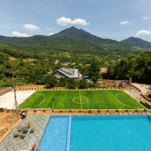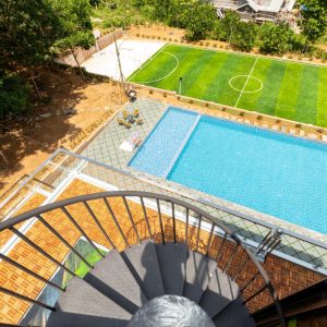 – Bể bơi vô cực diện tích 120m2, sử dụng công nghệ lọc nước điện phân muối, không sử dụng hóa chất clor công nghiệp.