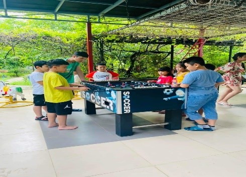 + Khu vui chơi rộng rãi có chòi lá ,trượt cỏ , bàn bia , bilac , bóng bàn . Có đu quay , bập bênh , thú nhún cho trẻ em.