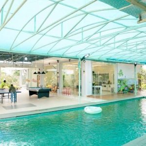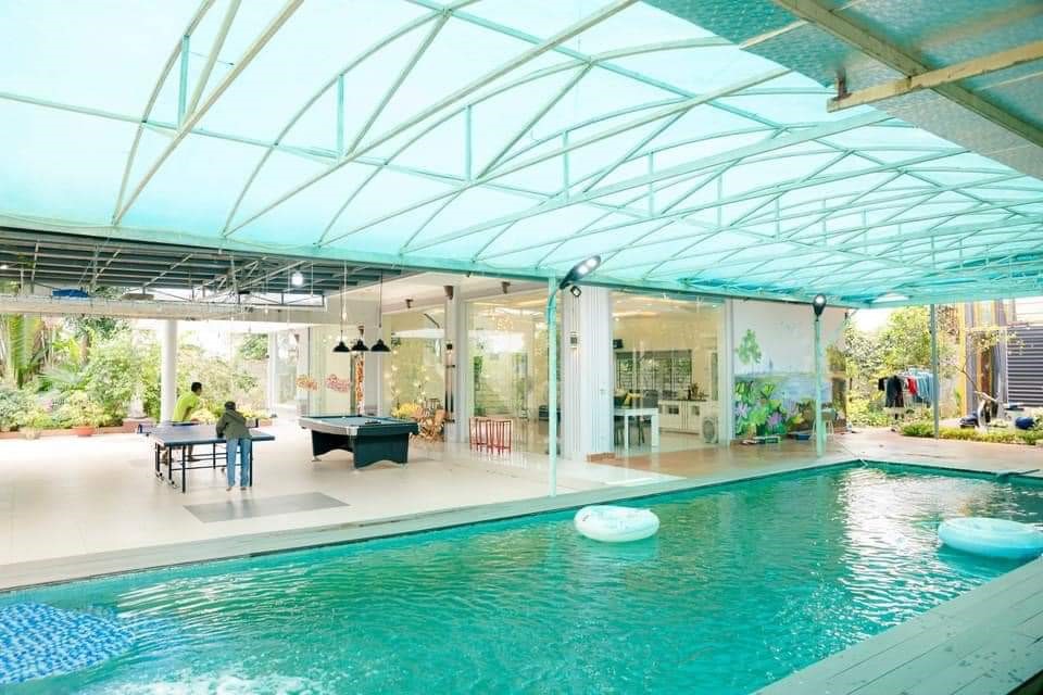 + Bế bơi có mái che trong khuân viên xanh mát.